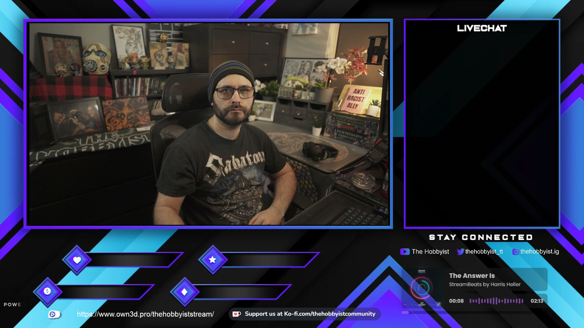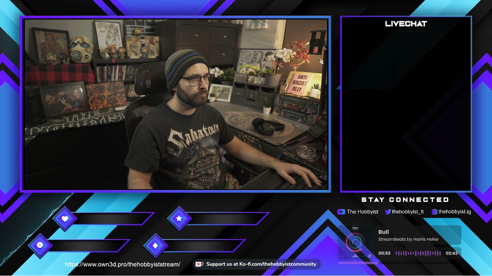 For now here’s an assortment of clips from the stream being built, currently I’m using rather bulky and plethora of boxes etc (mostly to hide myself) but in the future as my confidence grows may remove a lot of the bulk and opt for a more personable touch and utilise greenscreens to be a bit more involved in the content but for now it’s all I need to simply engage and discuss with my audience.
